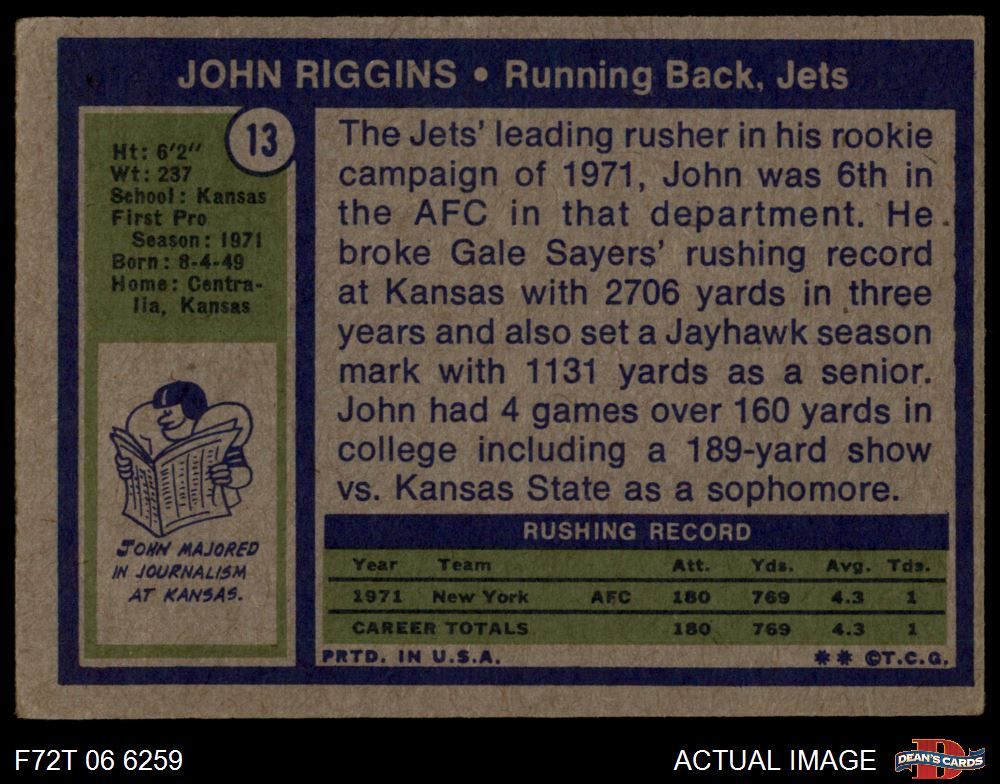 1972 Topps #13 John Riggins 3 - VG