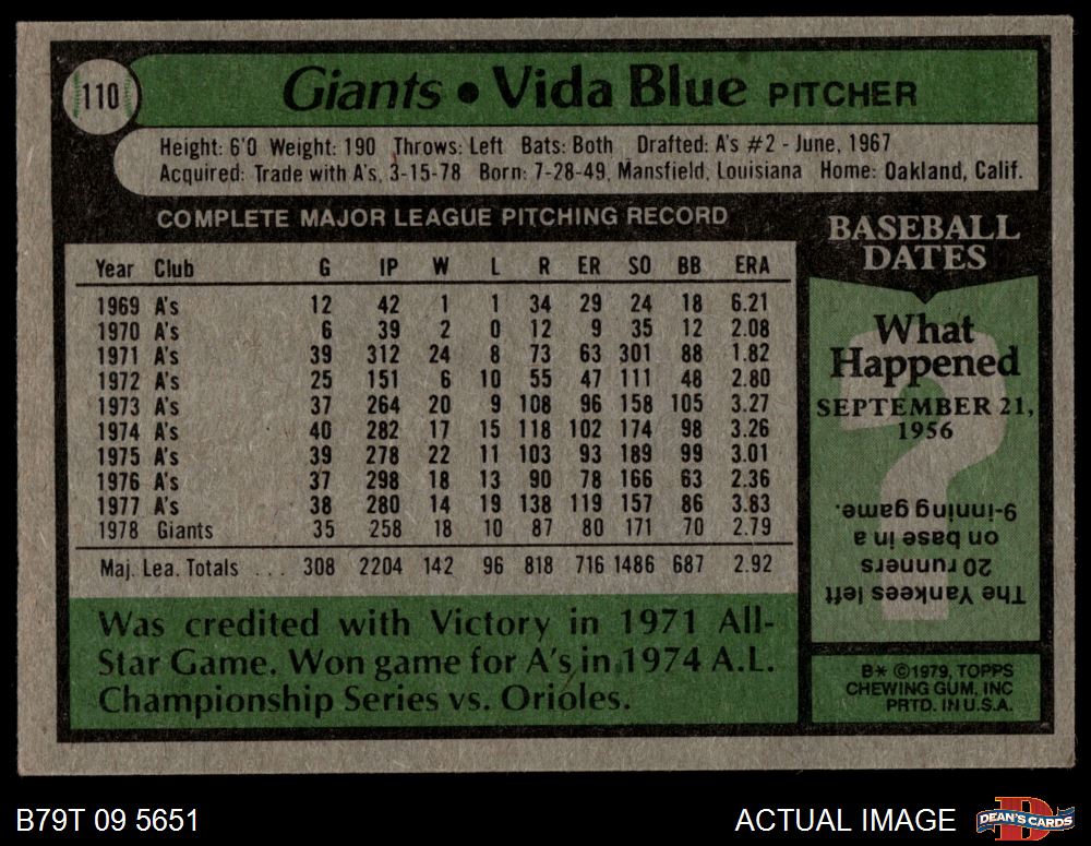 1979 Topps #110 Vida Blue 3.5 - VG+