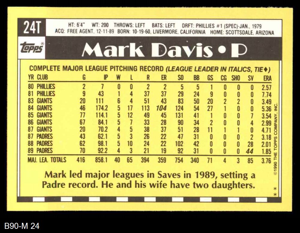 1990 Topps Traded #24 T Mark Davis 8 - NM/MT
