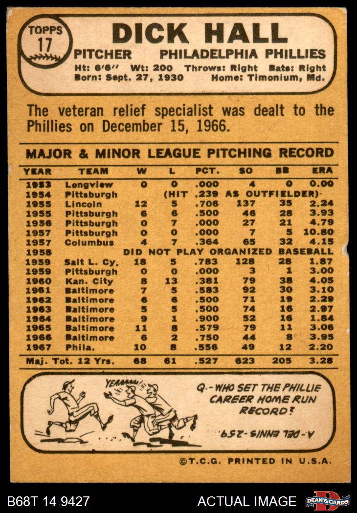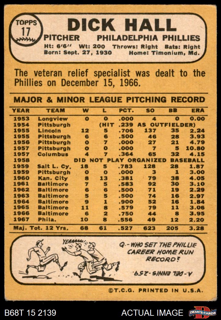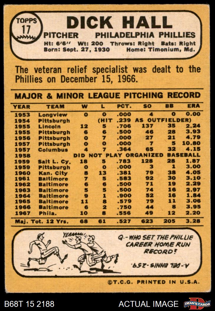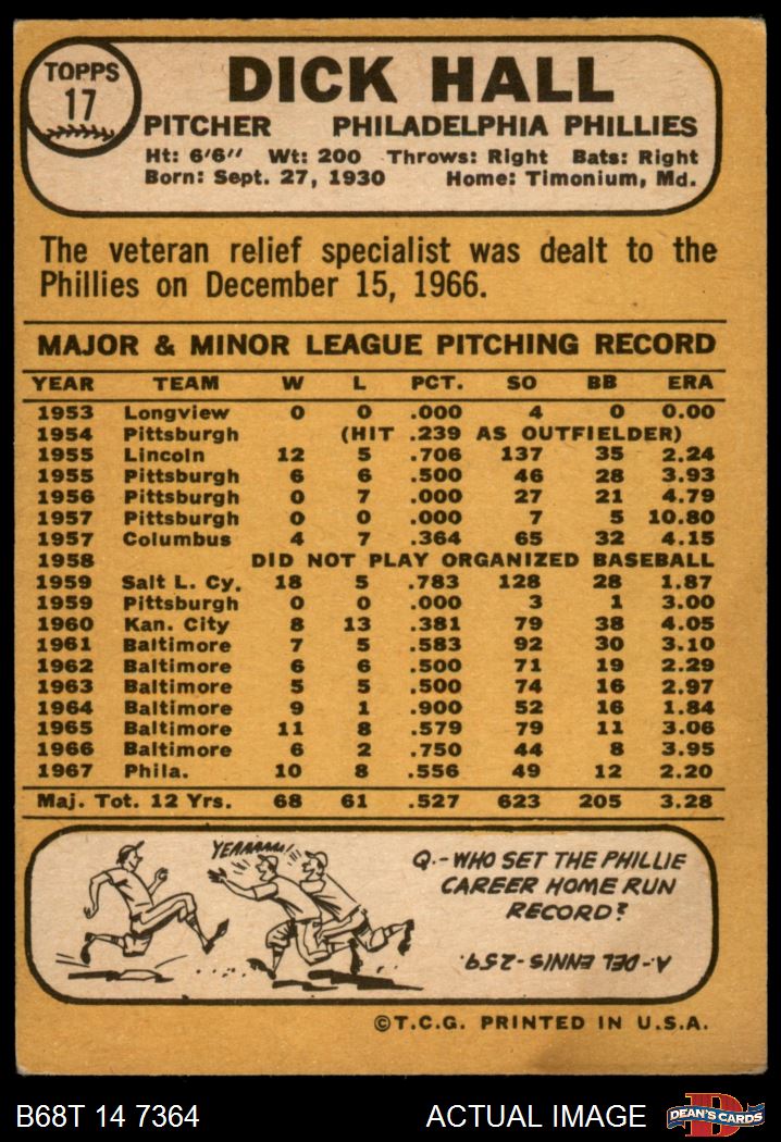 1968 Topps #17 A Dick Hall