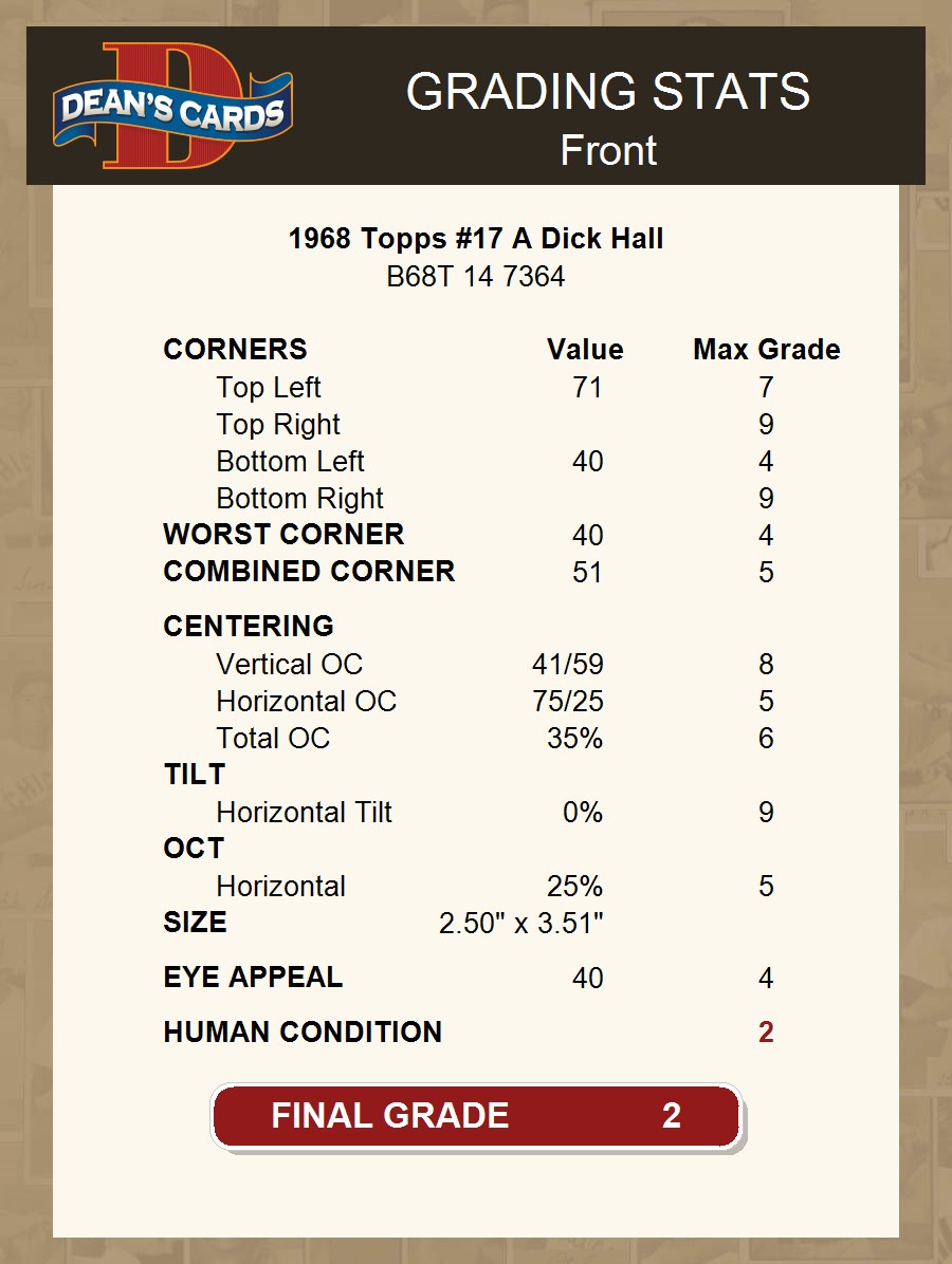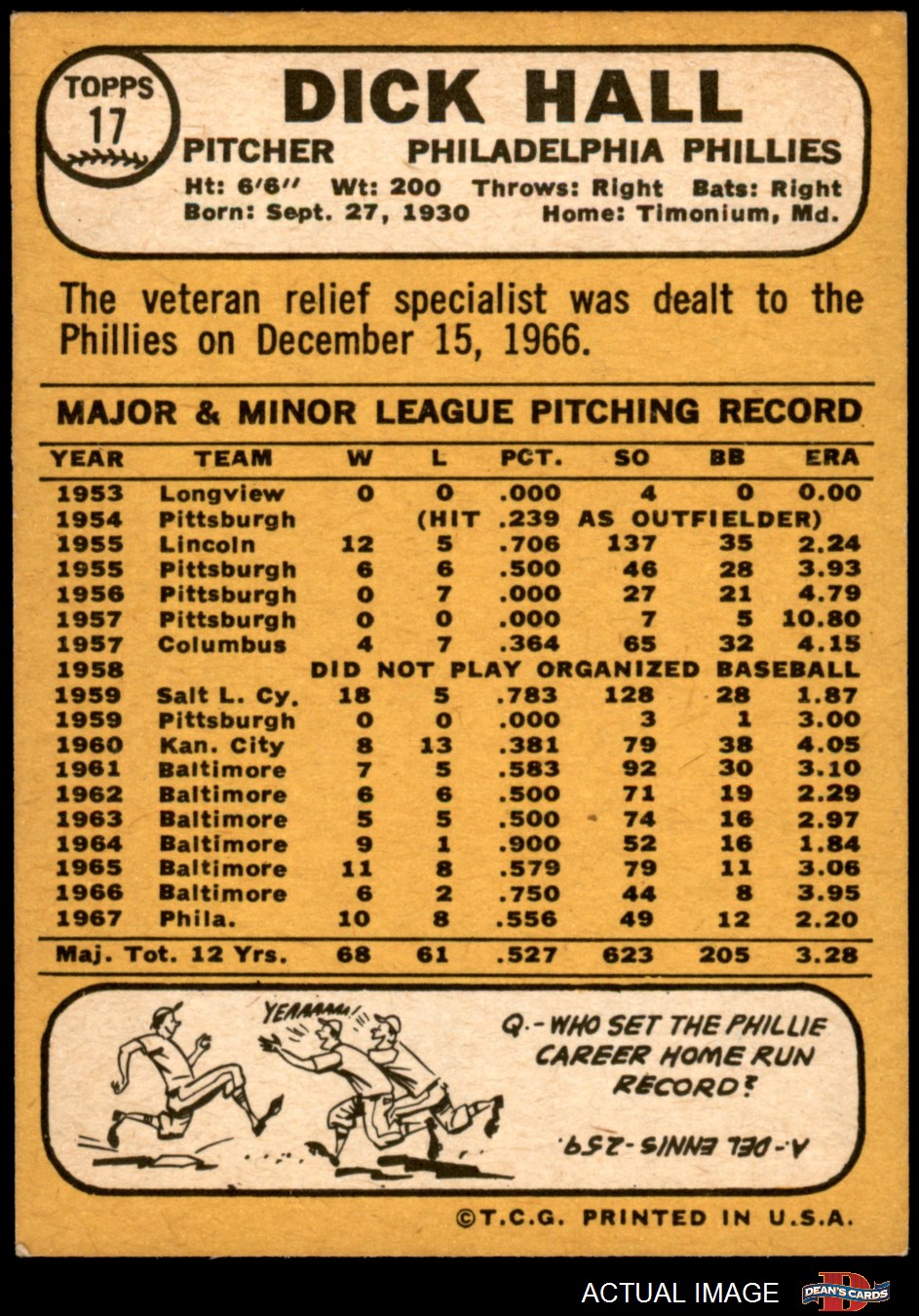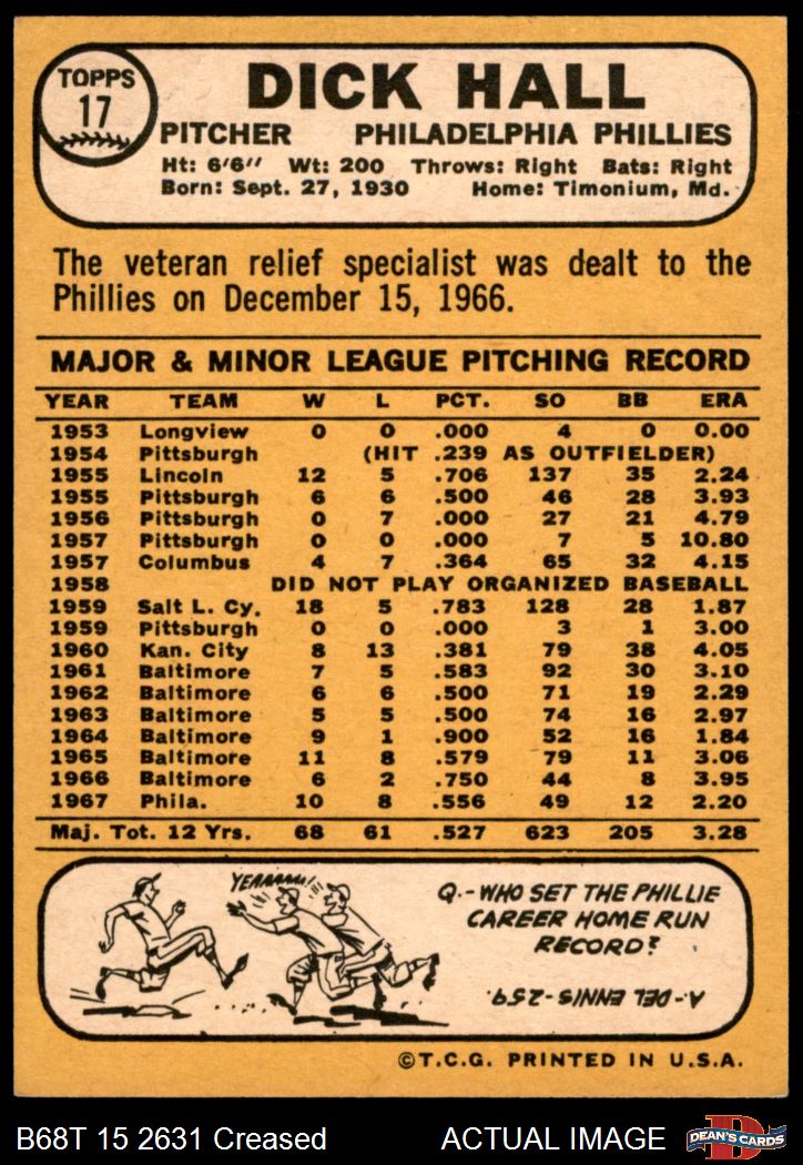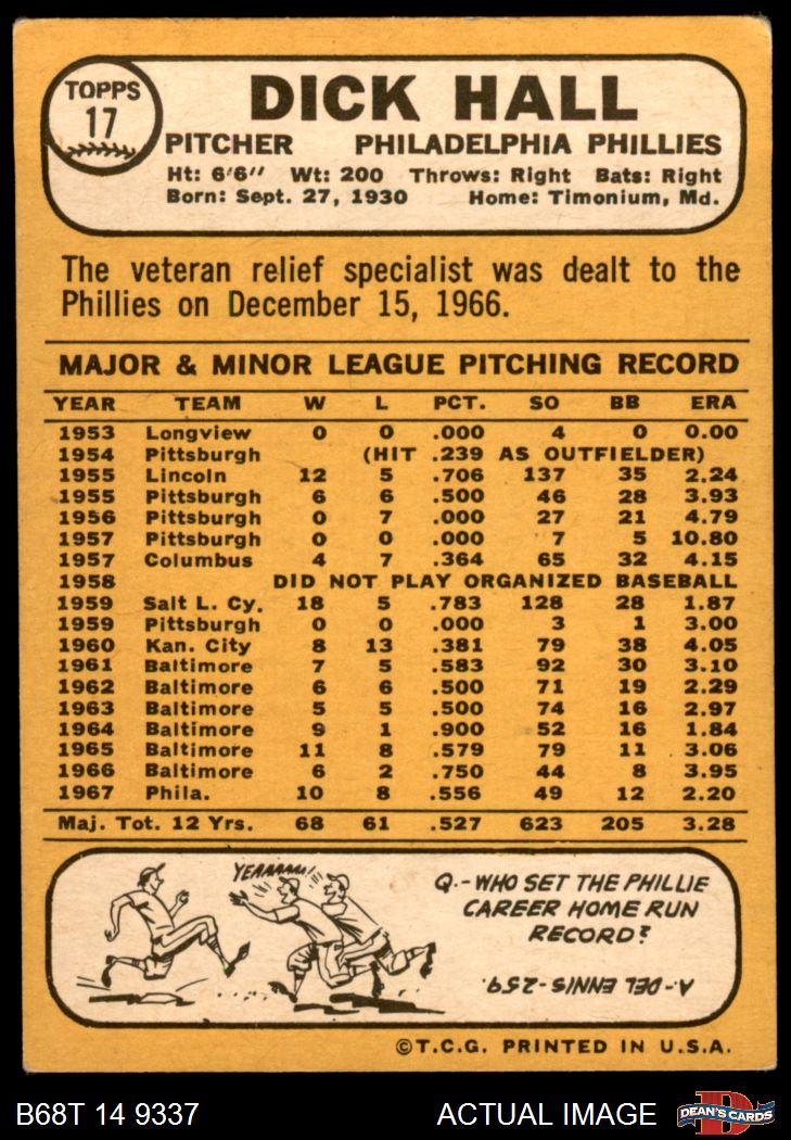 1968 Topps #17 A Dick Hall