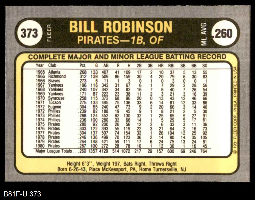 1981 Fleer #373 Bill Robinson 8 - NM/MT
