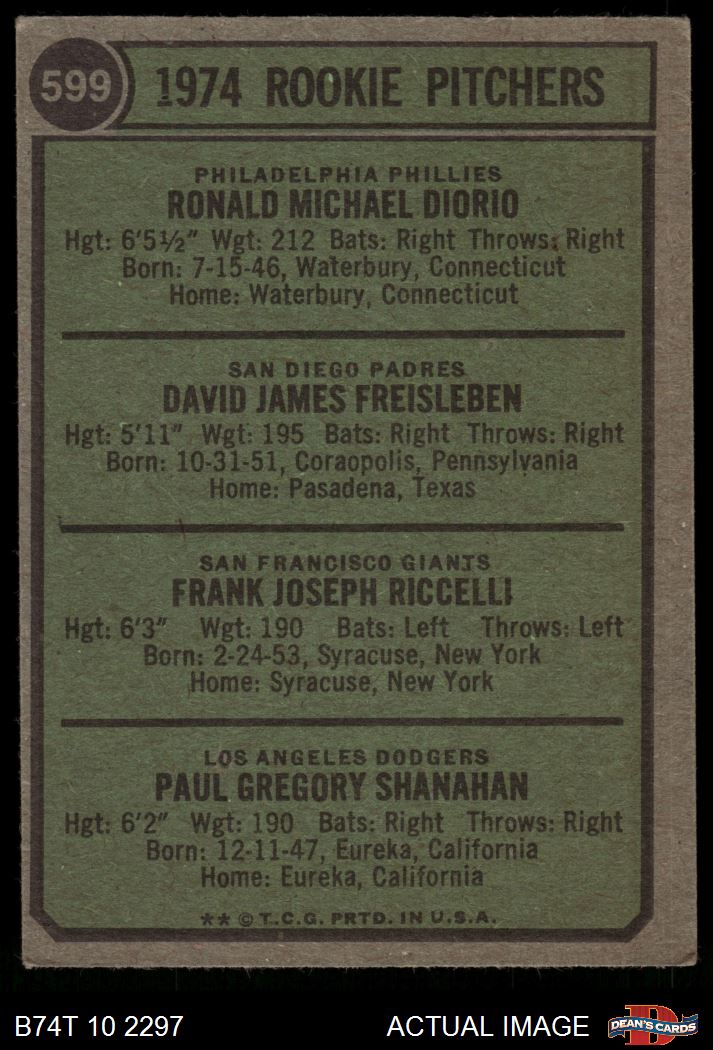 1974 Topps #599 LG - Dave Freisleben / Ron Diorio / Frank Riccelli / Greg Shanahan Rookie Pitchers 3 - VG