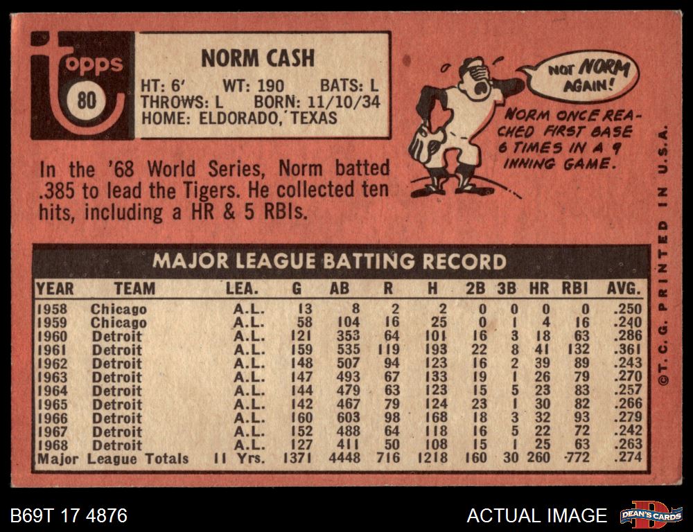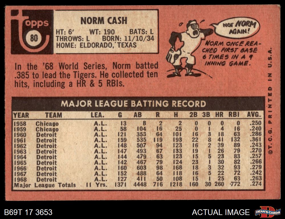 1969 Topps #80 Norm Cash 4 - VG/EX