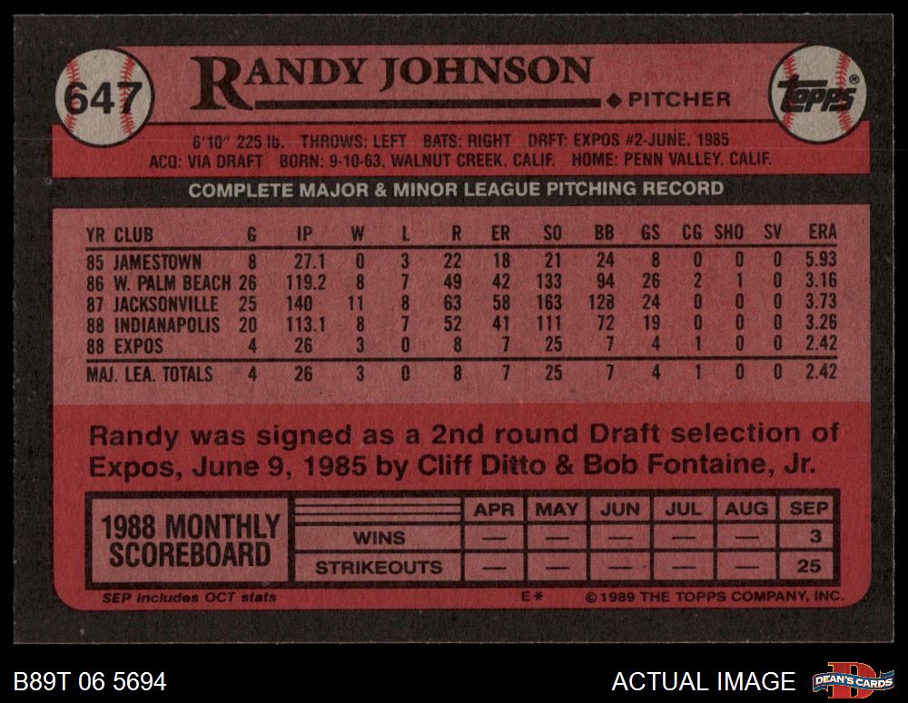 1989 Topps #647 Randy Johnson 8 - NM/MT