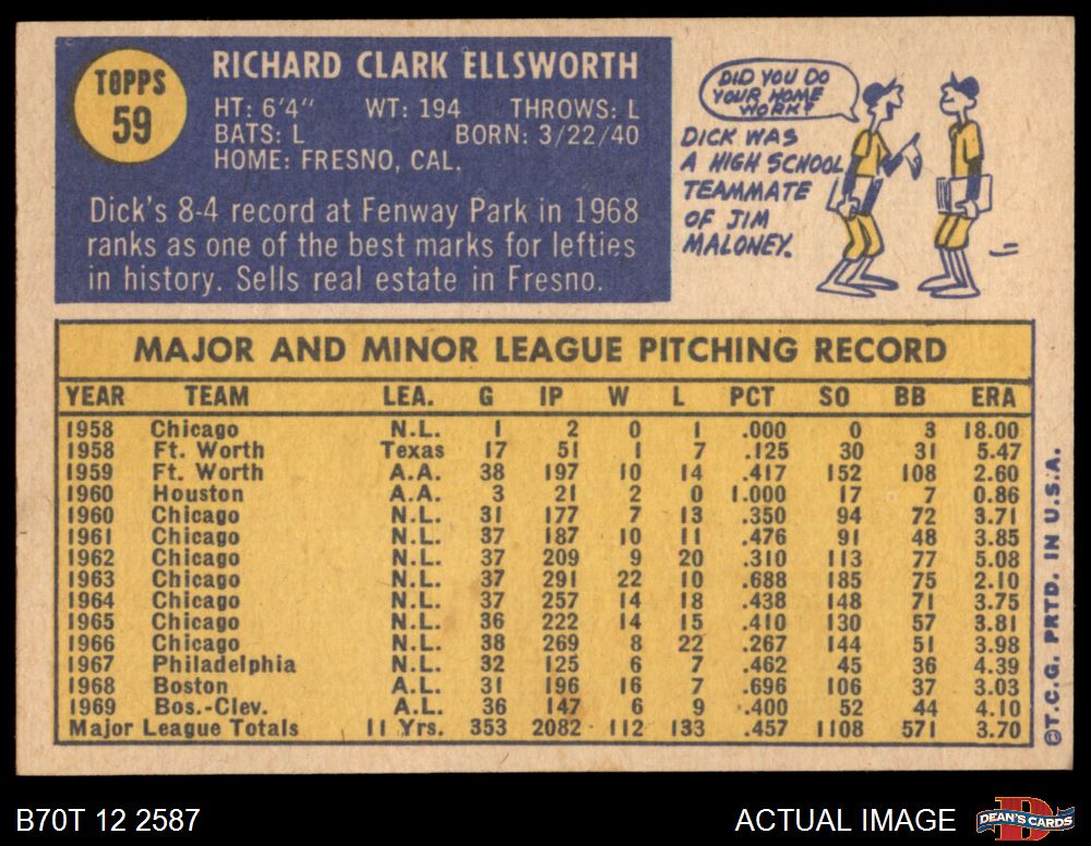 1970 Topps #59 Dick Ellsworth 8 - NM/MT