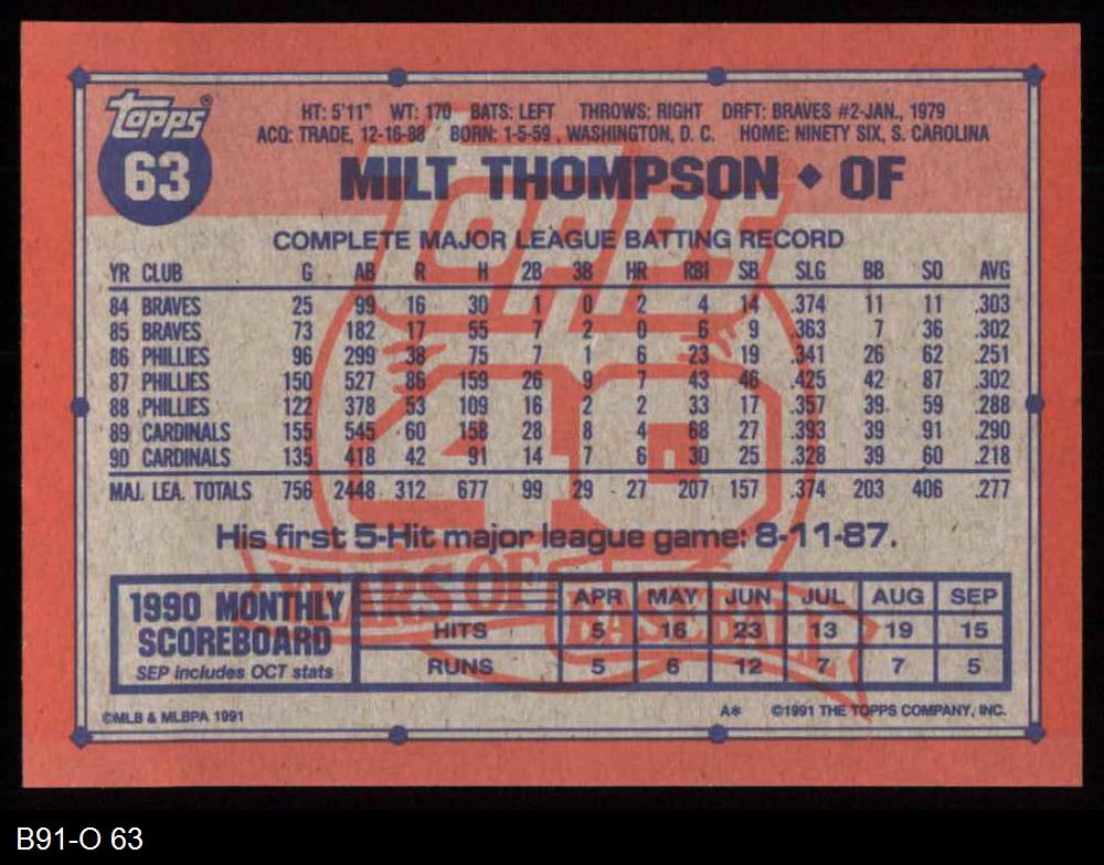 1991 Topps #63 Milt Thompson