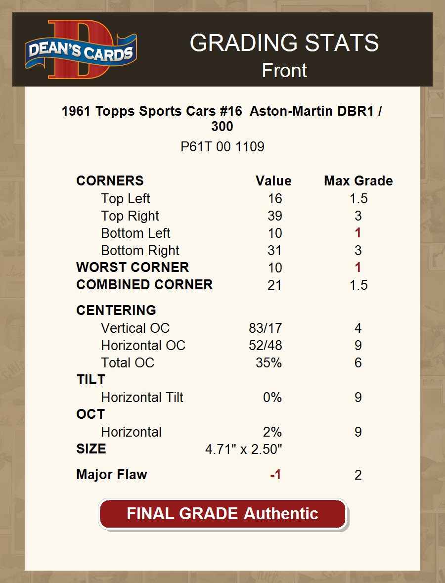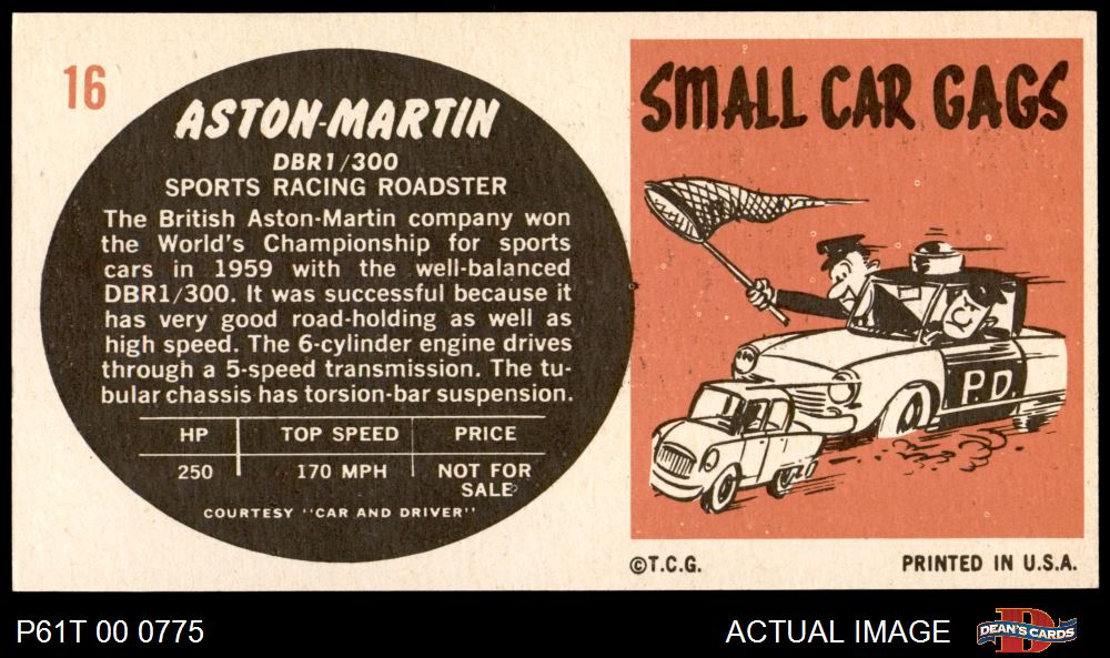 1961 Topps Sports Cars #16 Aston-Martin DBR1 / 300