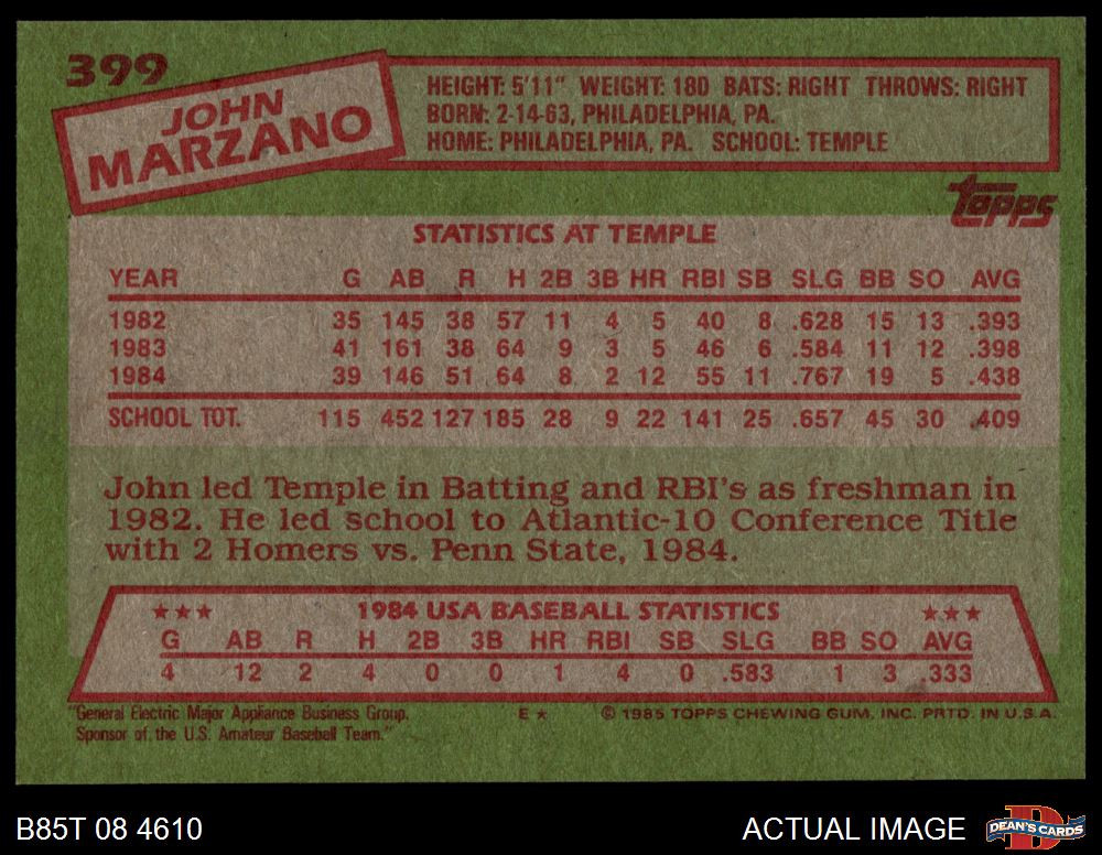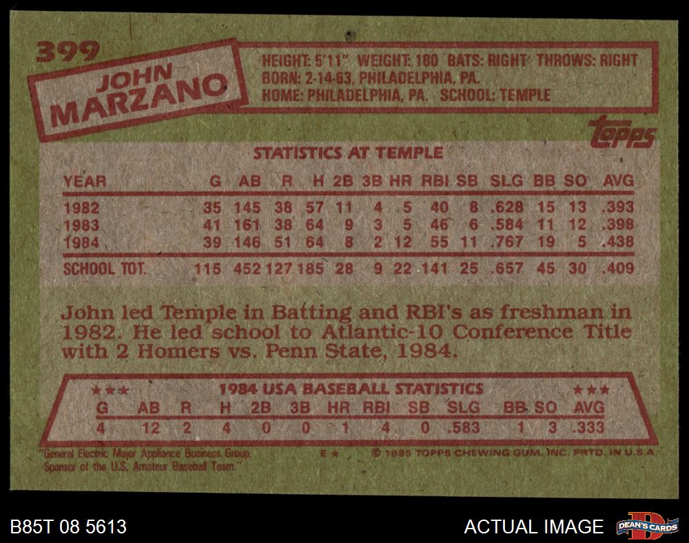 1985 Topps #399 - John Marzano Team USA 5 - EX