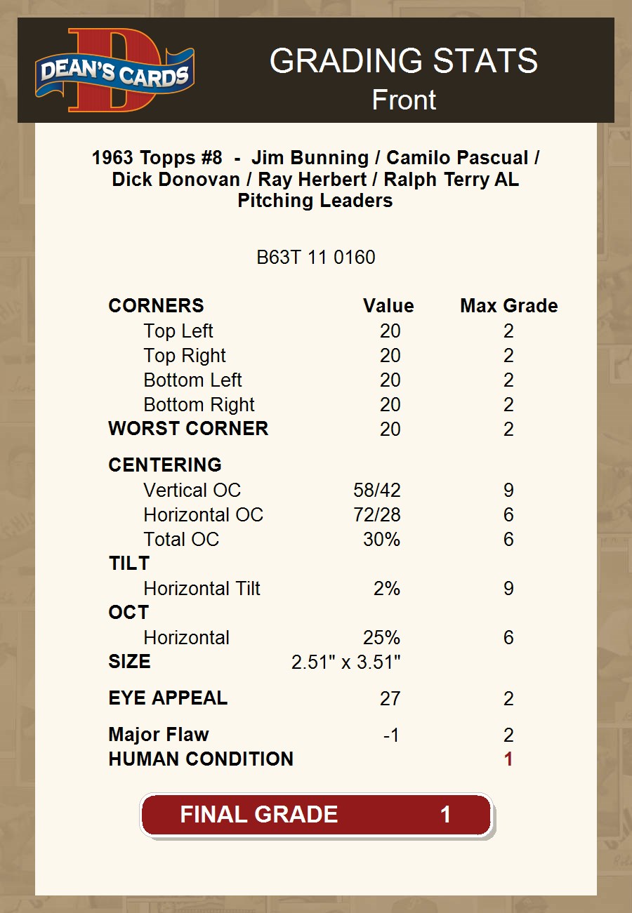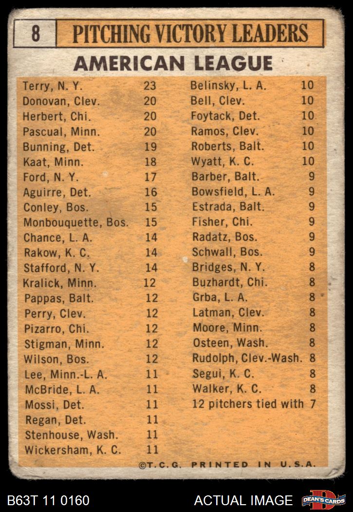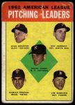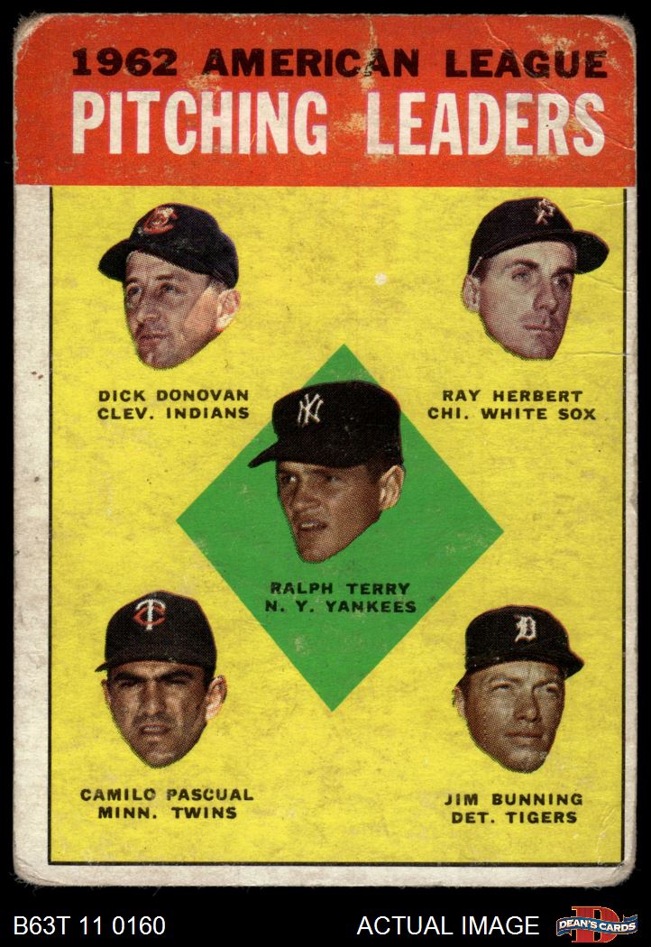 1963 Topps #8 - Jim Bunning / Camilo Pascual / Dick Donovan / Ray Herbert / Ralph Terry AL Pitching Leaders 1 - POOR