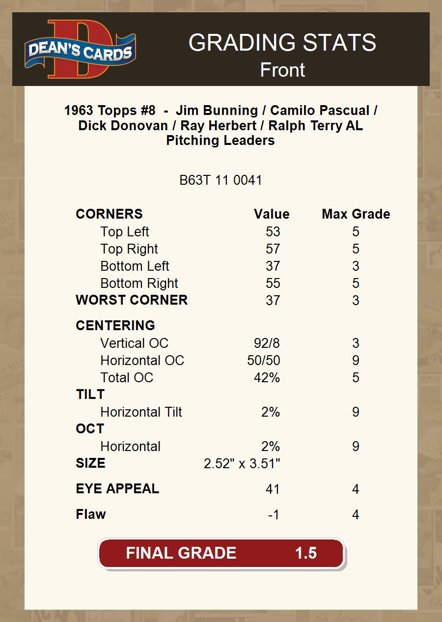 1963 Topps #8 - Jim Bunning / Camilo Pascual / Dick Donovan / Ray Herbert / Ralph Terry AL Pitching Leaders 1.5 - FAIR