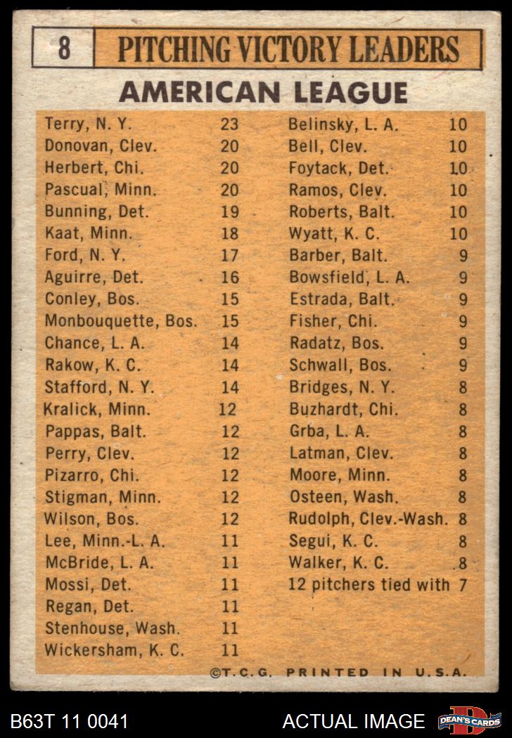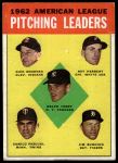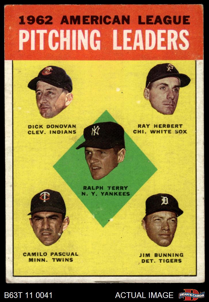 1963 Topps #8  -  Jim Bunning / Camilo Pascual / Dick Donovan / Ray Herbert / Ralph Terry AL Pitching Leaders Front Thumbnail
