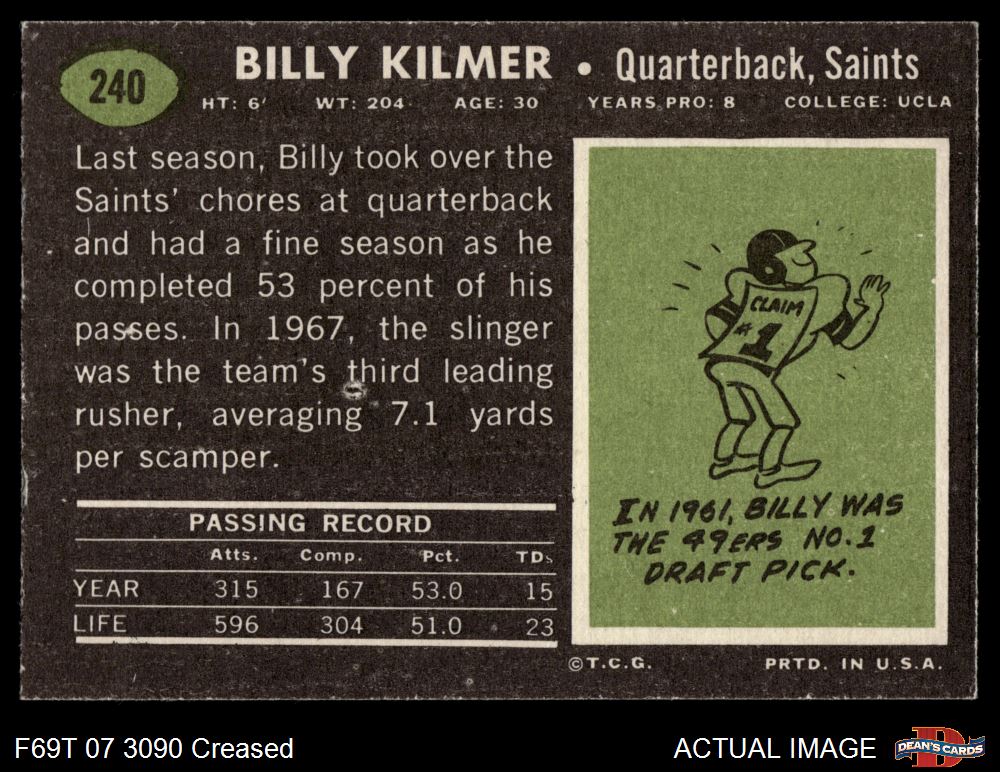 1969 Topps #240 Billy Kilmer Front Thumbnail
