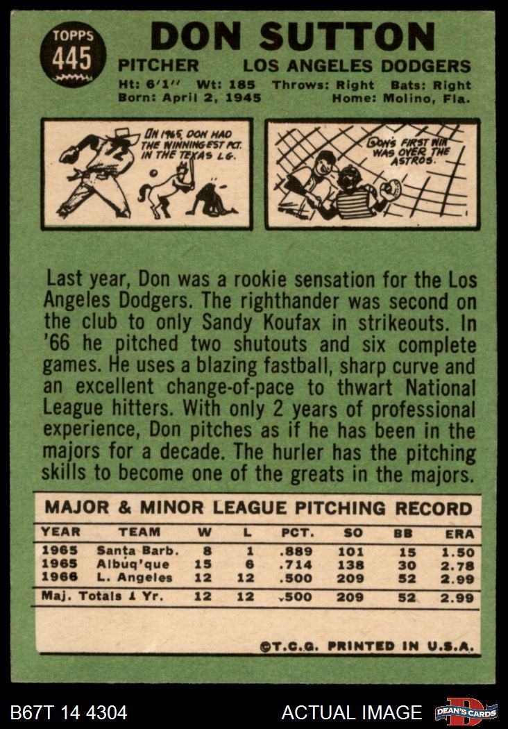 1967 Topps #445 Don Sutton 4 - VG/EX