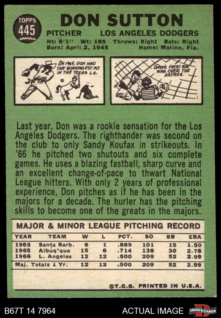 1967 Topps #445 Don Sutton 6 - EX/MT