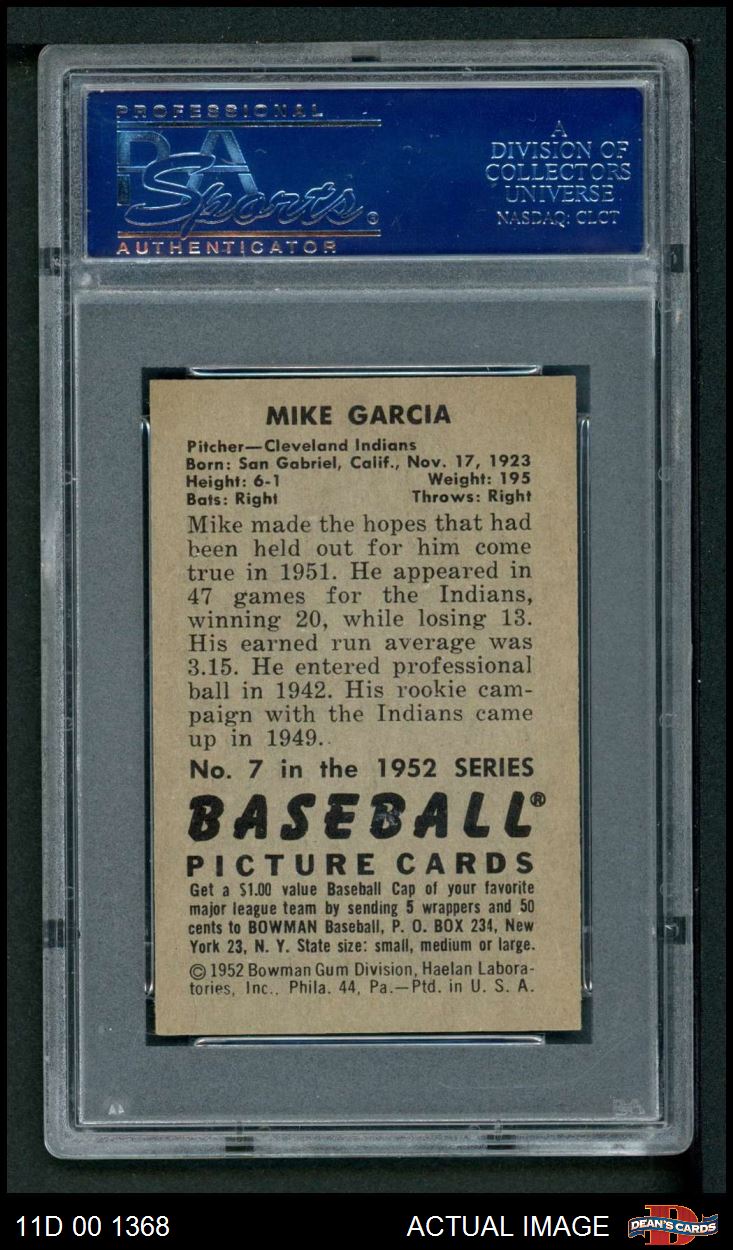 1952 Bowman #7 Mike Garcia PSA 8 - NM/MT