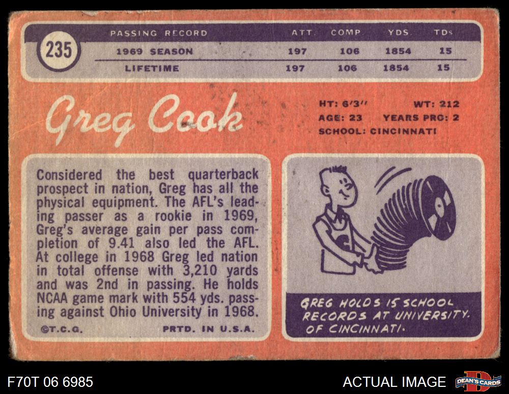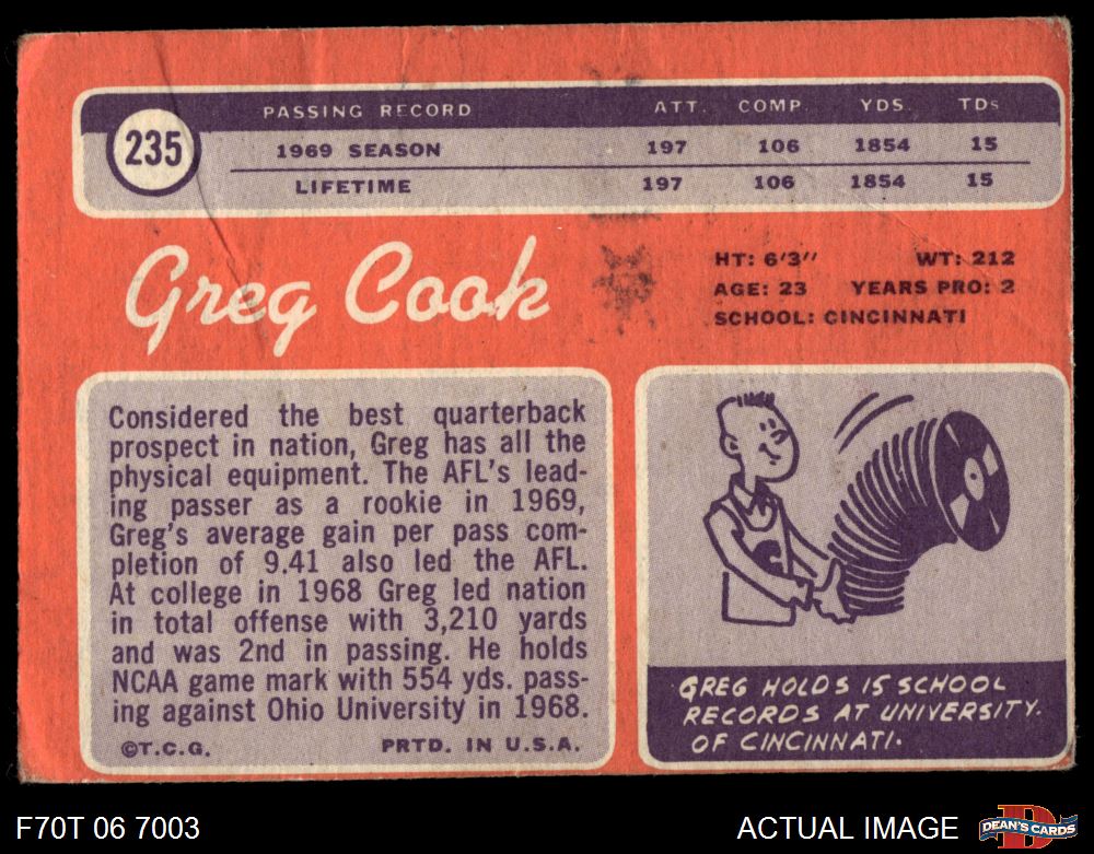 1970 Topps #235 Greg Cook 1 - POOR