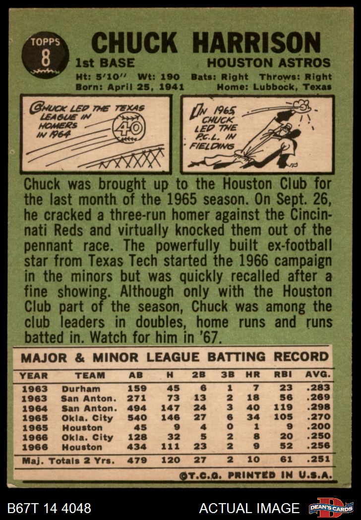 1967 Topps #8 Chuck Harrison 5 - EX