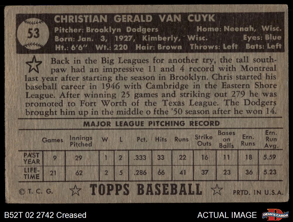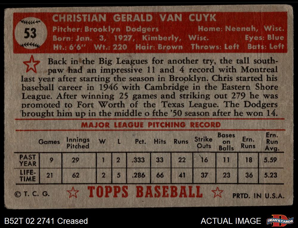 1952 Topps #53 Chris Van Cuyk
