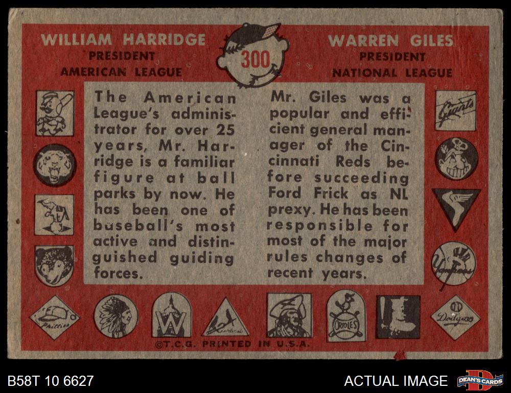 1958 Topps #300 - William Harridge / Warren Giles League Presidents 2 - GOOD
