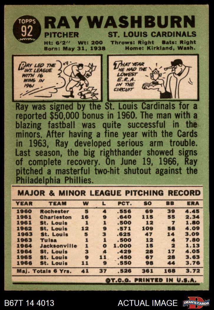1967 Topps #92 Ray Washburn 5.5 - EX+