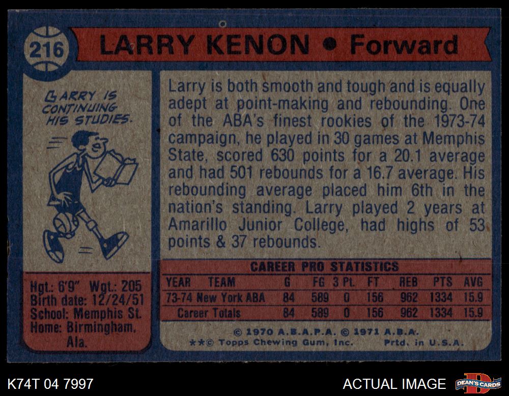 1974 Topps #216 Larry Kenon 8 - NM/MT