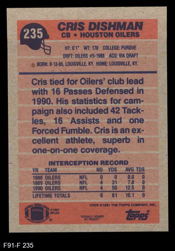1991 Topps #235 Cris Dishman