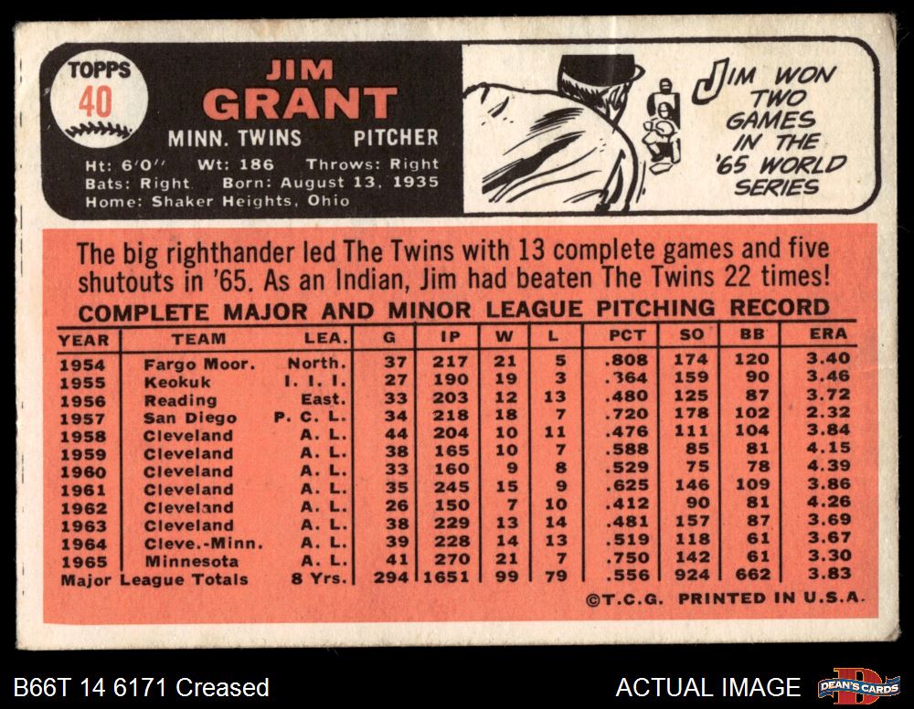 1966 Topps #40 Jim Grant 2.5 - GD+