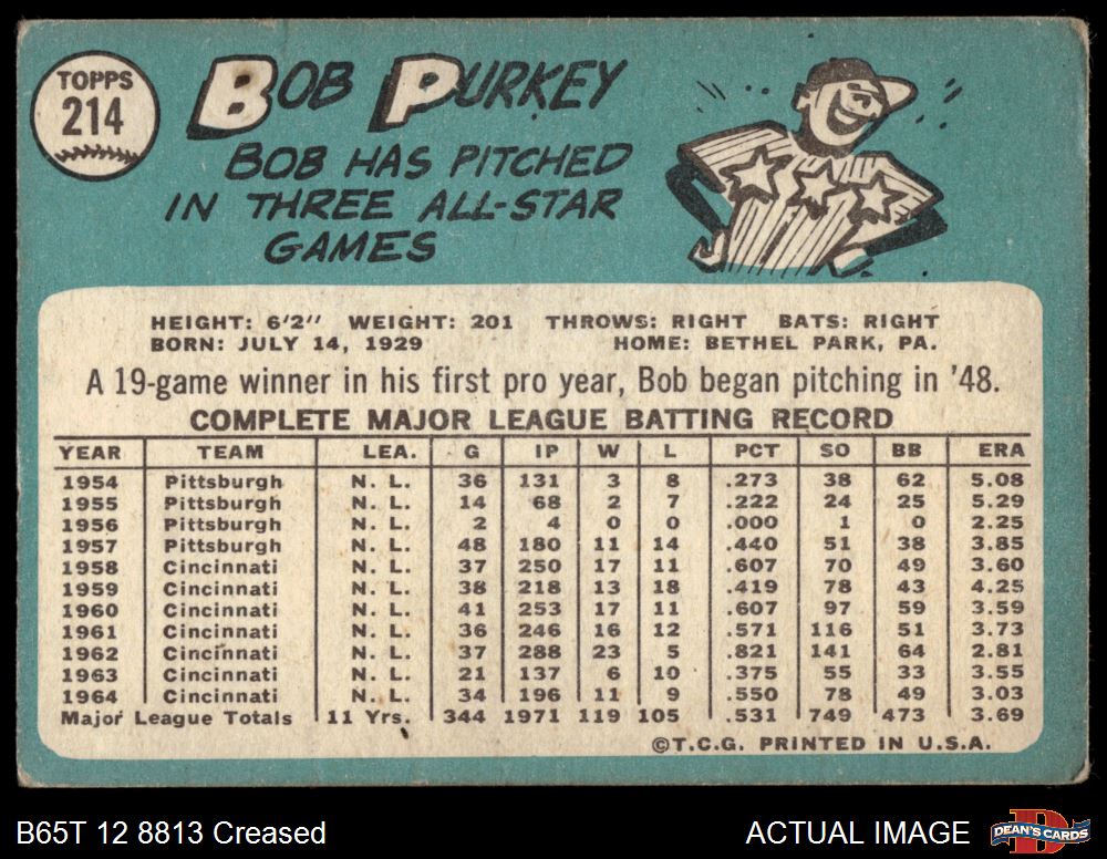 1965 Topps #214 Bob Purkey 1.5 - FAIR
