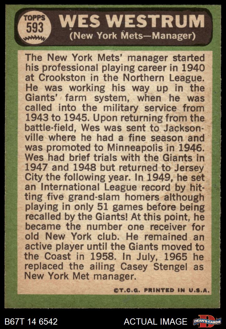 1967 Topps #593 Wes Westrum 6 - EX/MT