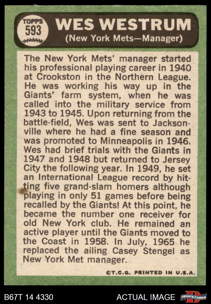 1967 Topps #593 Wes Westrum 6.5 - EX/MT+