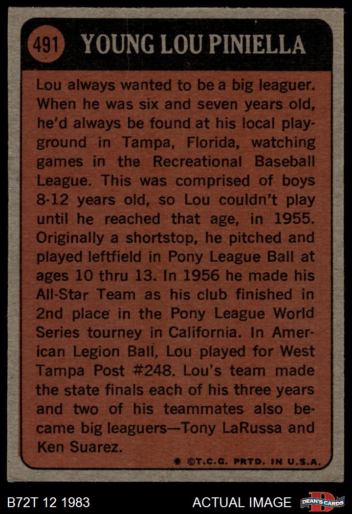1972 Topps #491 - Lou Piniella Boyhood Photo 6 - EX/MT
