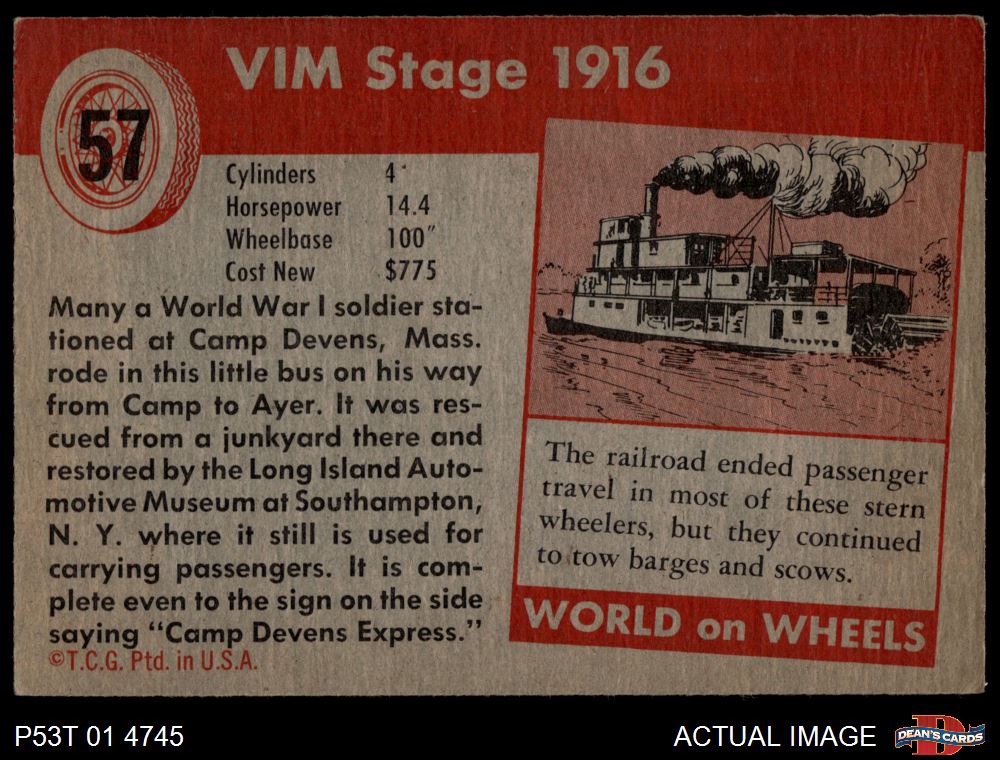1954 Topps World on Wheels #57 Vim Stage 1916 4 - VG/EX