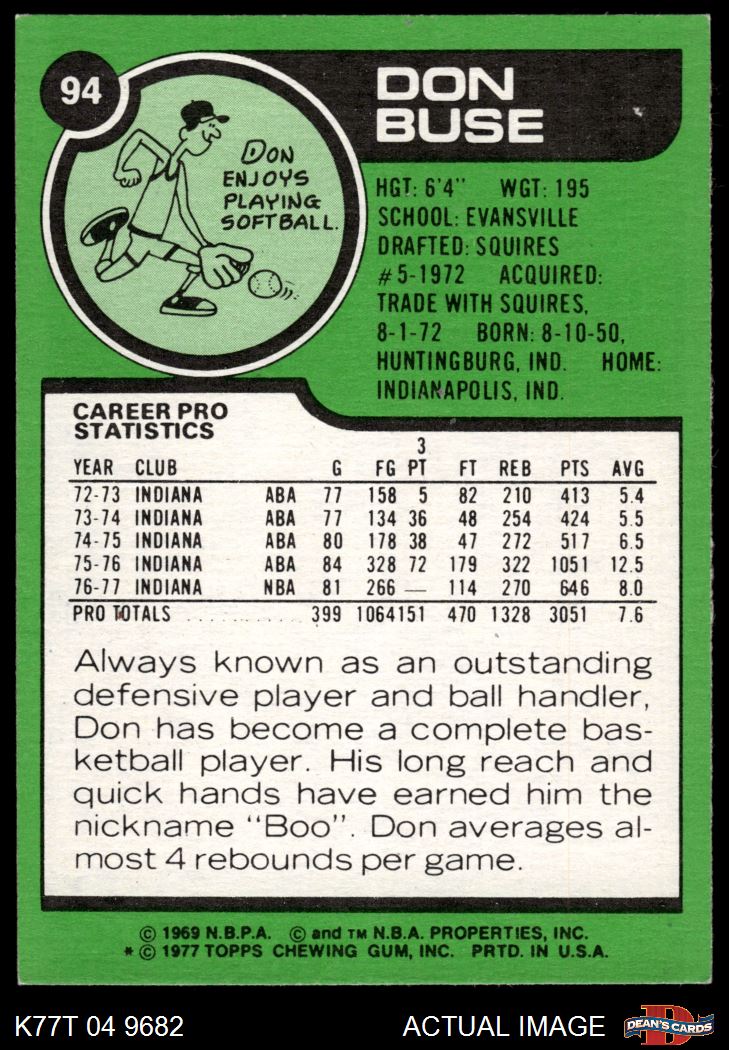 1977 Topps #94 Don Buse 5 - EX