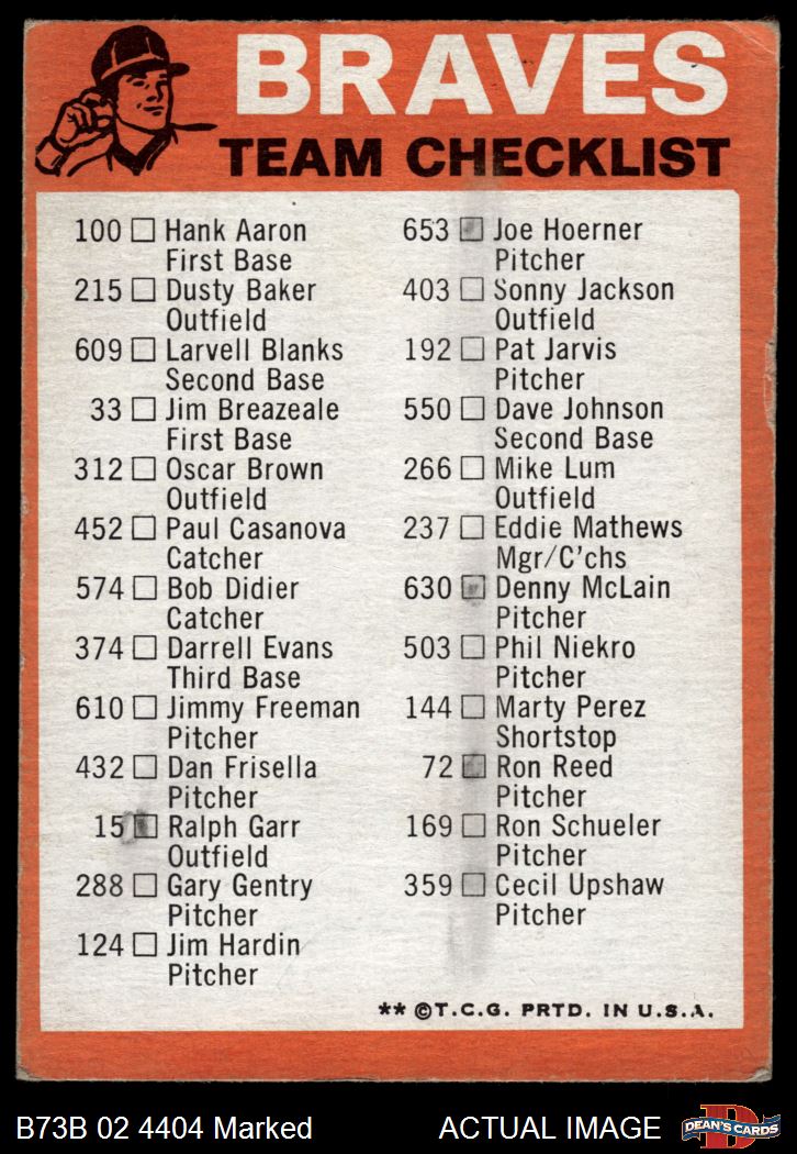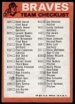 1973 Topps Blue Team Checklist  Atlanta Braves Front Thumbnail