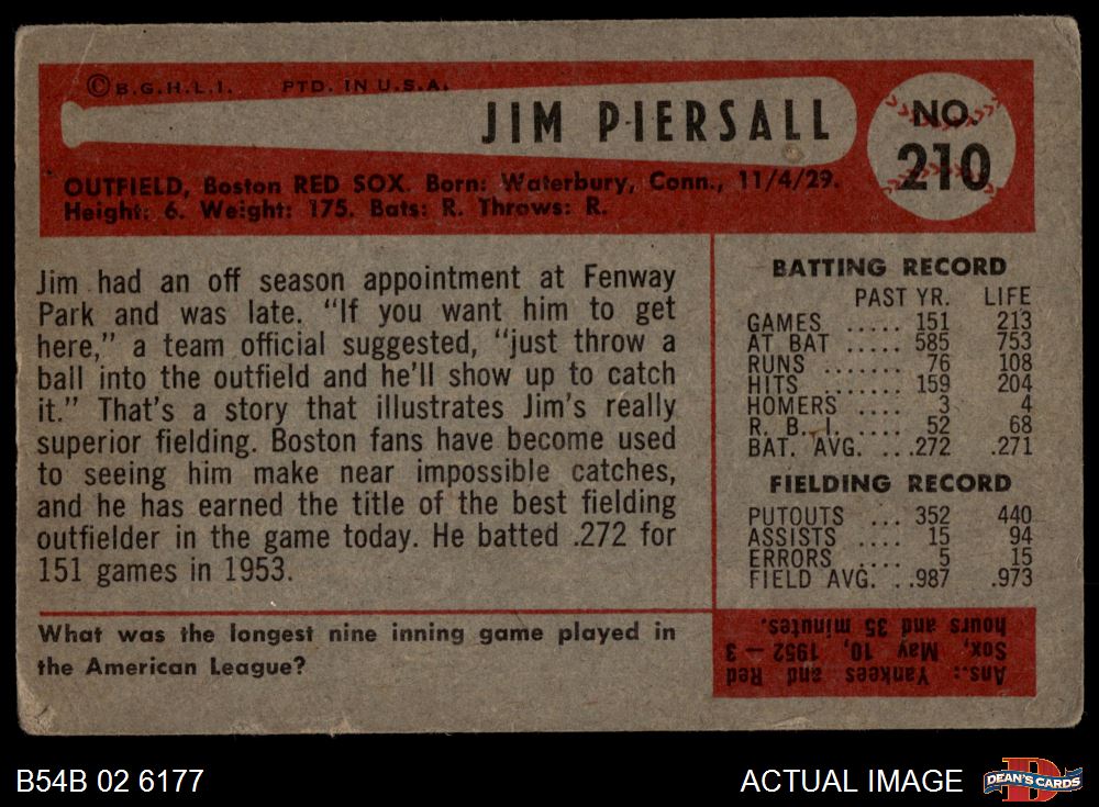 1954 Bowman #210 Jimmy Piersall 2.5 - GD+