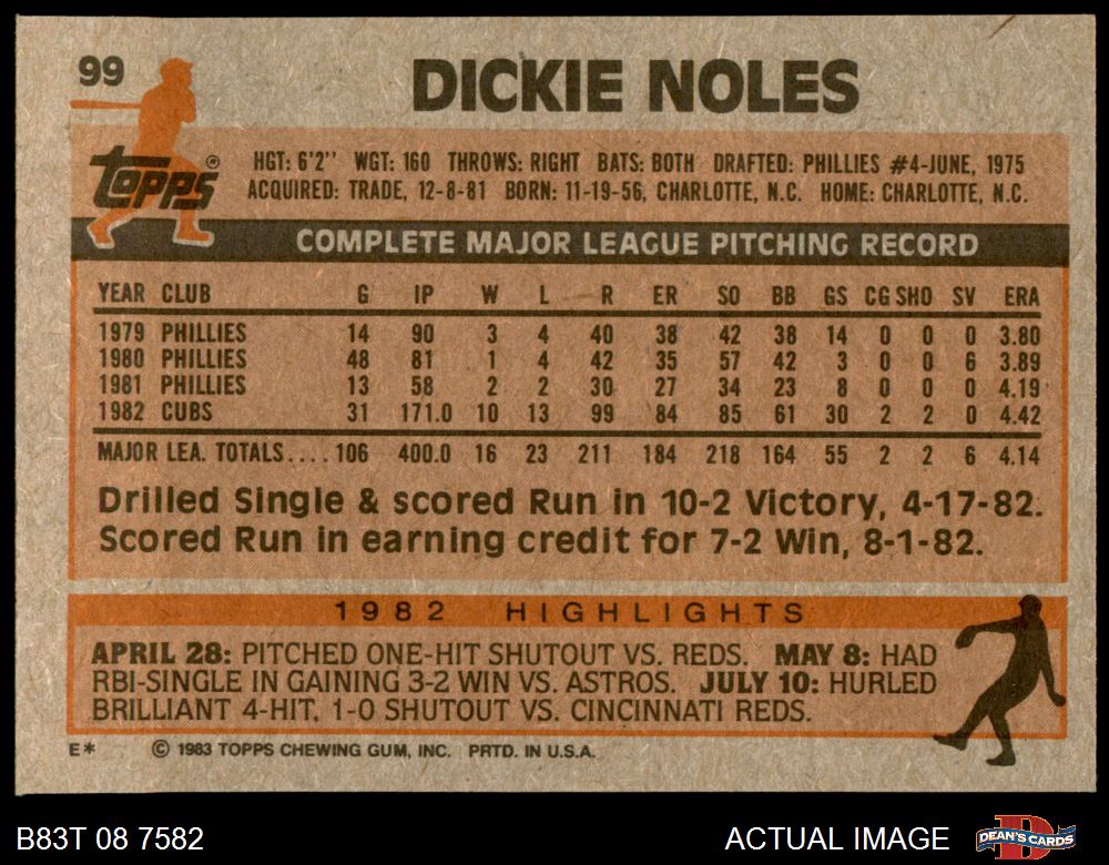 1983 Topps #99 Dickie Noles