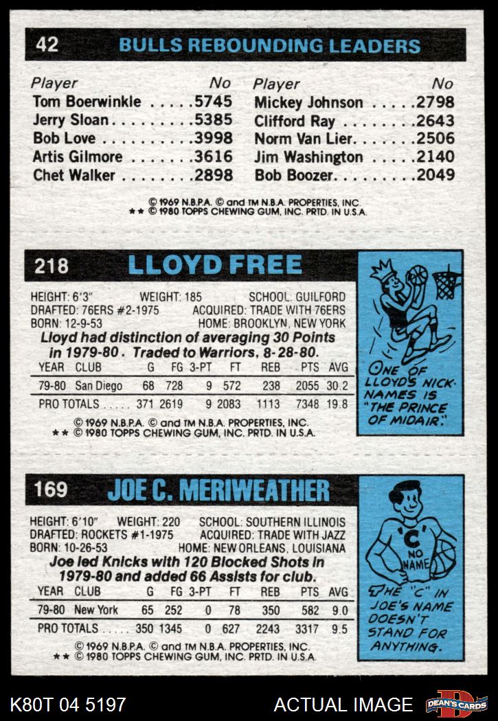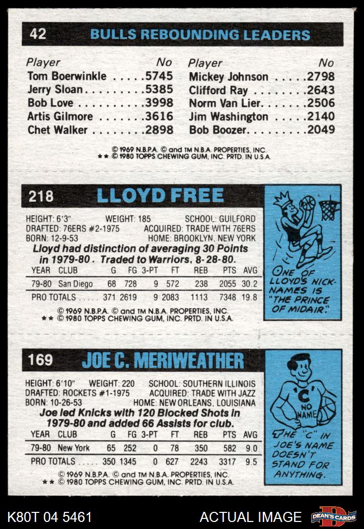 1980 Topps - Joe Meriweather / World B. Free / David Greenwood 169 / 218 / 42 7 - NM