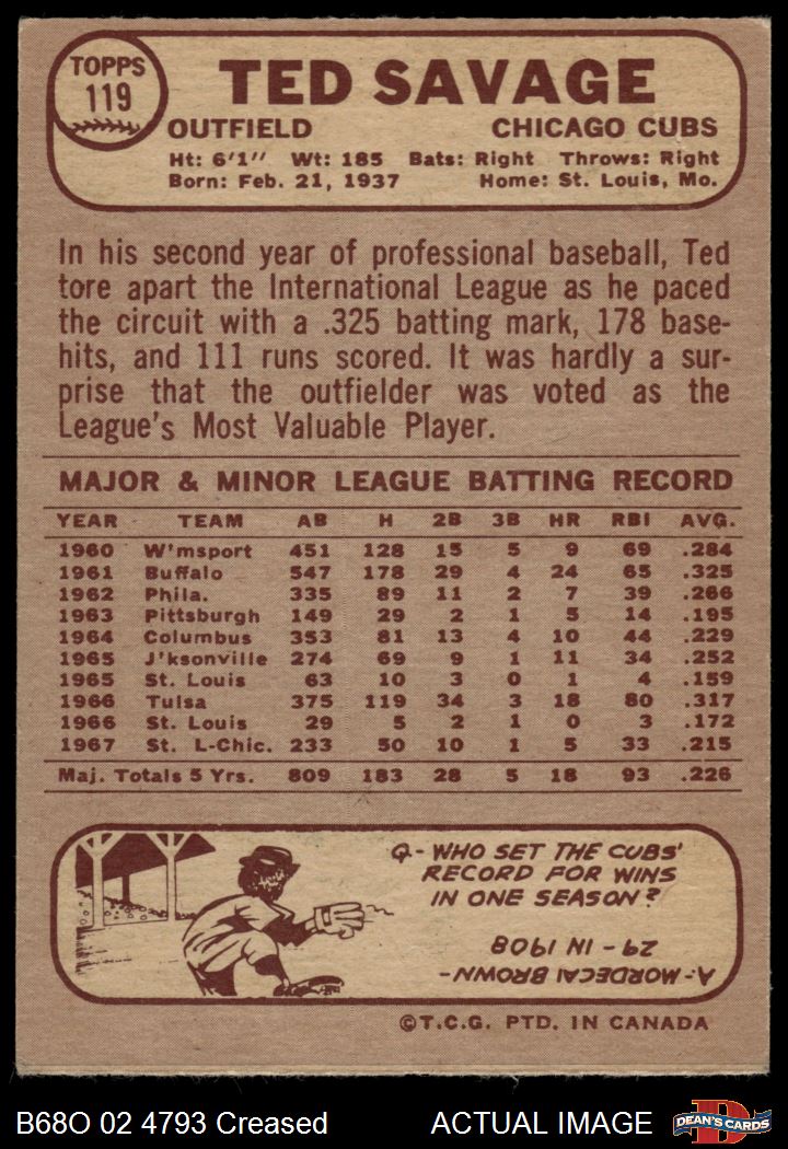 1968 O-Pee-Chee #119 Ted Savage 3 - VG
