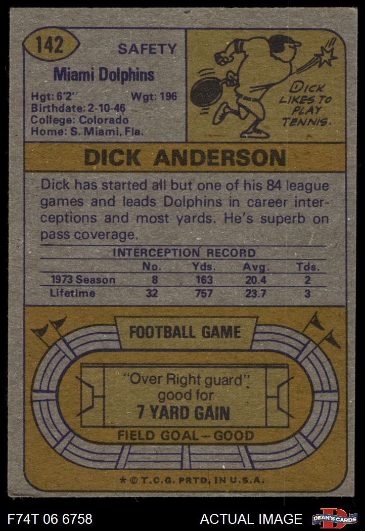 1974 Topps #142 - Dick Anderson All-Pro 4 - VG/EX