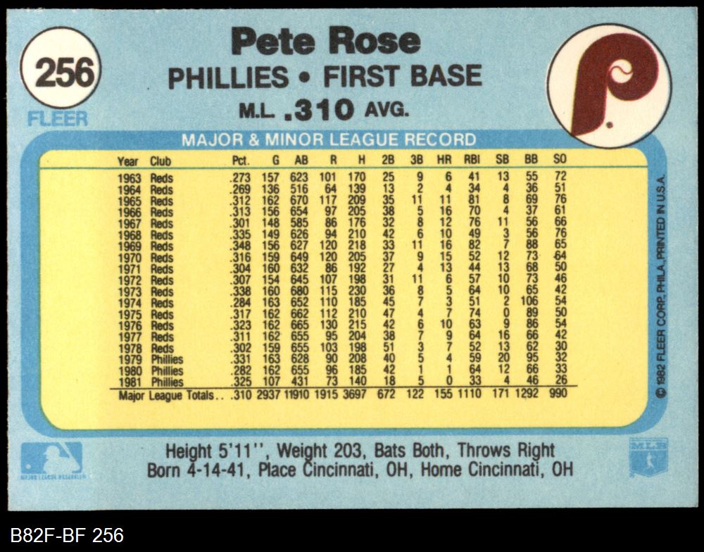 1982 Fleer #256 Pete Rose