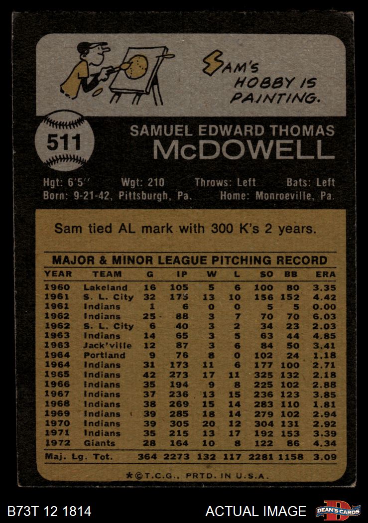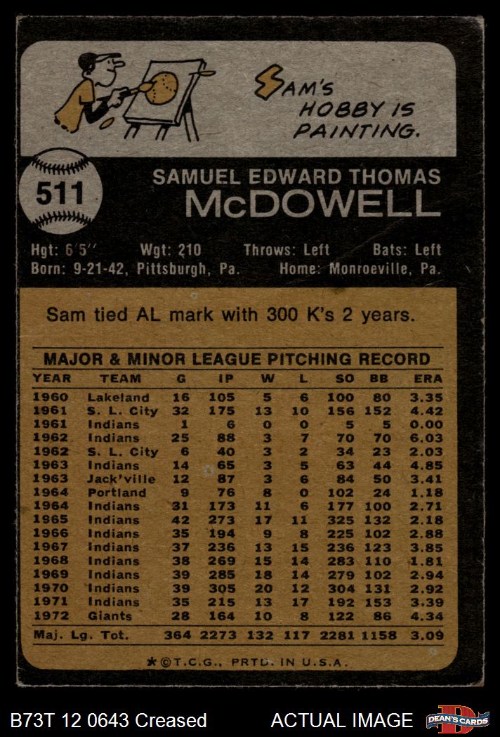 1973 Topps #511 Sam McDowell 2 - GOOD