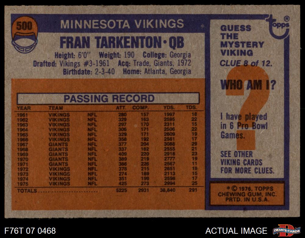 1976 Topps #500 Fran Tarkenton 4 - VG/EX