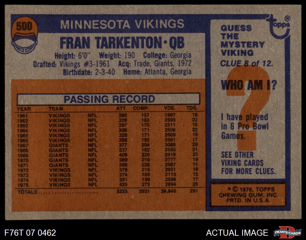 1976 Topps #500 Fran Tarkenton 5 - EX