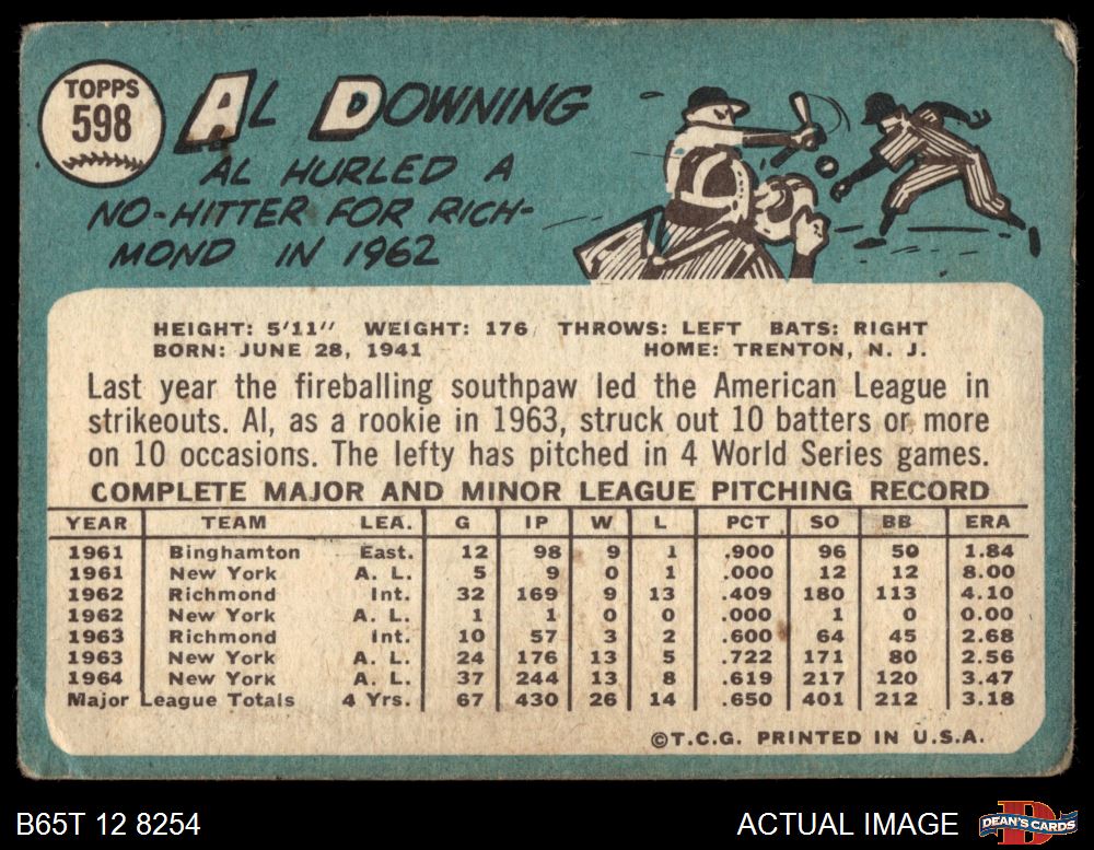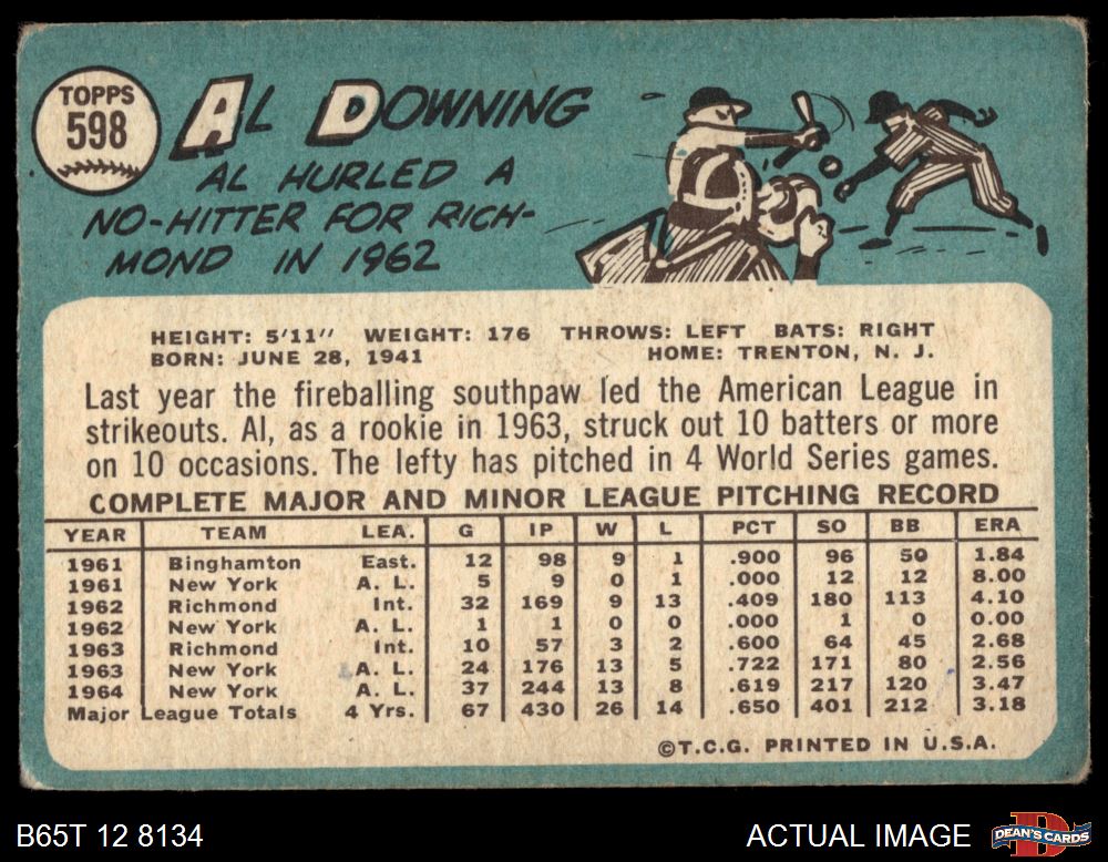 1965 Topps #598 Al Downing 1 - POOR