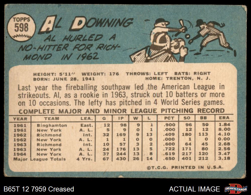 1965 Topps #598 Al Downing Front Thumbnail