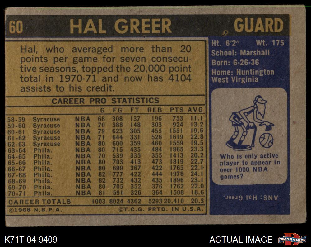 1971 Topps #60 Hal Greer AUTHENTIC