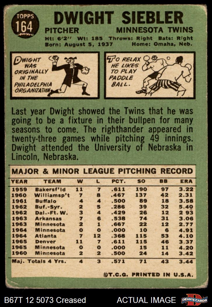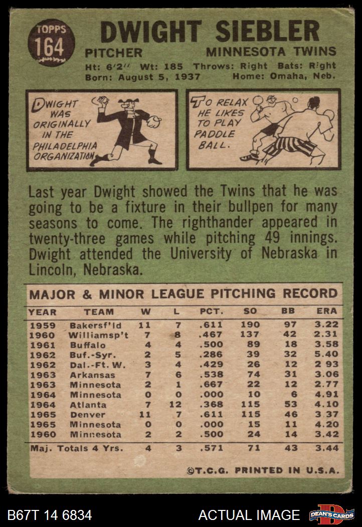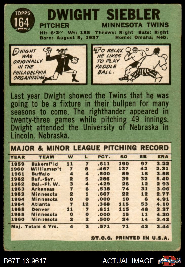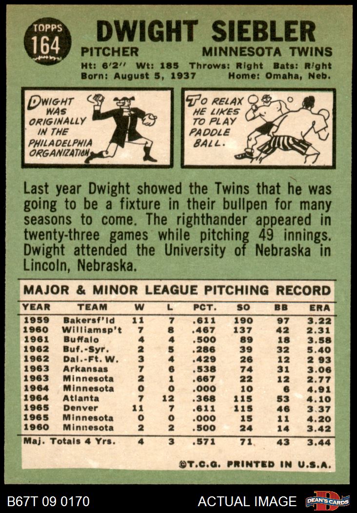 1967 Topps #164 Dwight Siebler
