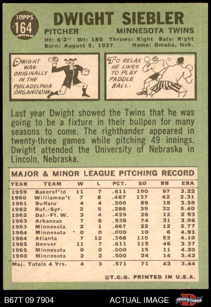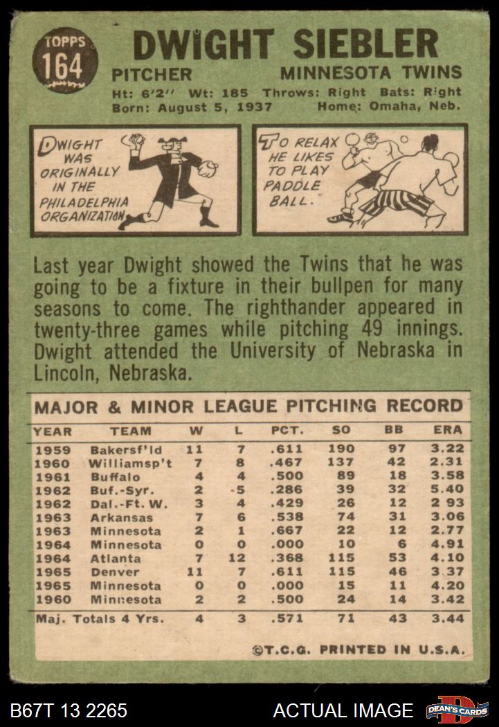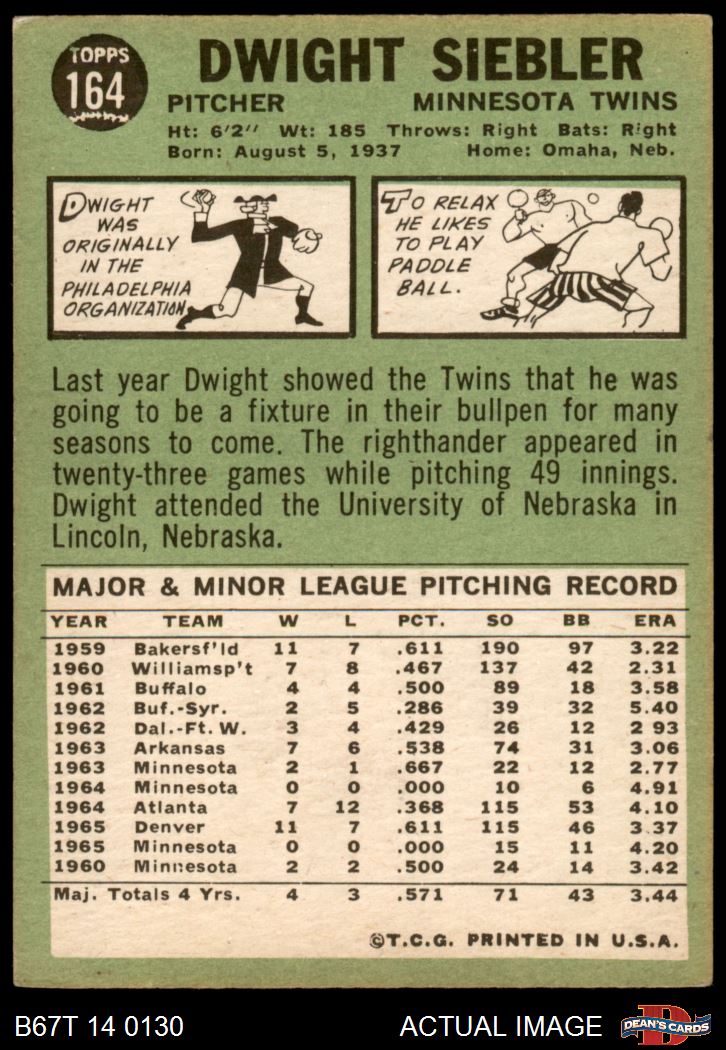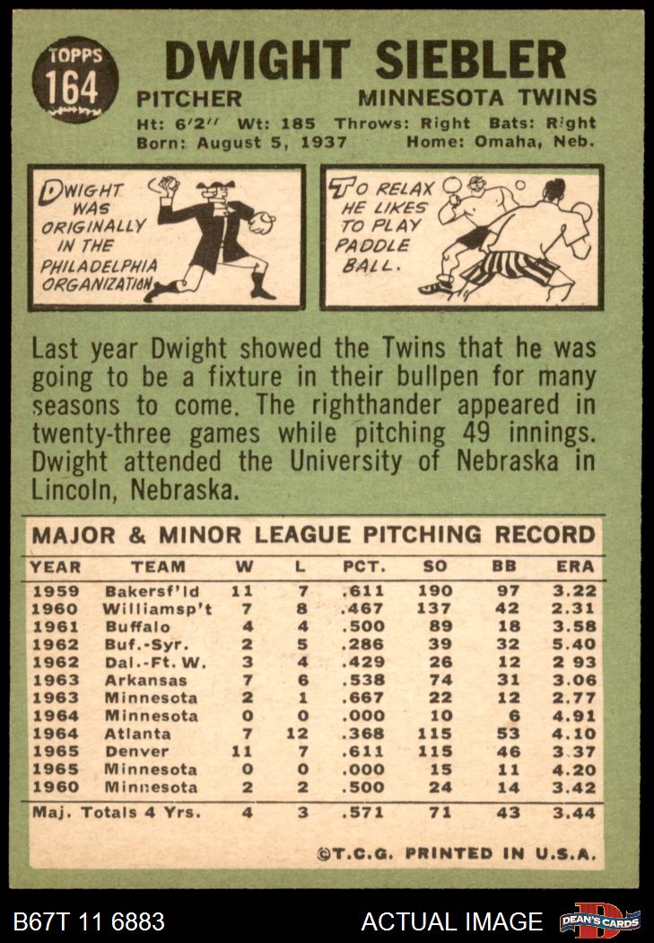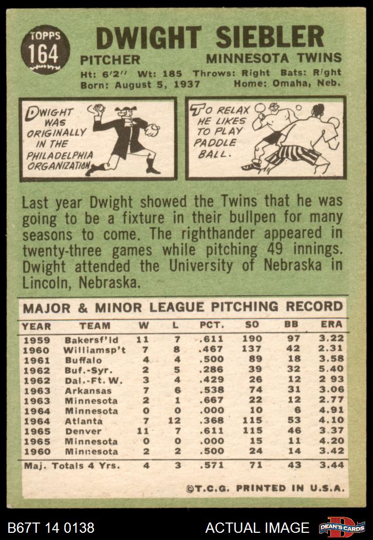 1967 Topps #164 Dwight Siebler