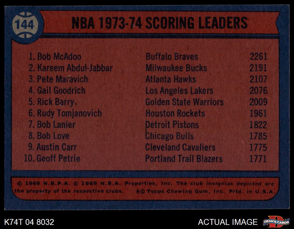 1974 Topps #144 Bob McAdoo / Kareem Abdul-Jabbar Lew Alcindor / Pete Maravich 5 - EX